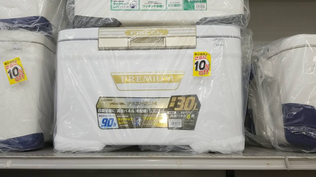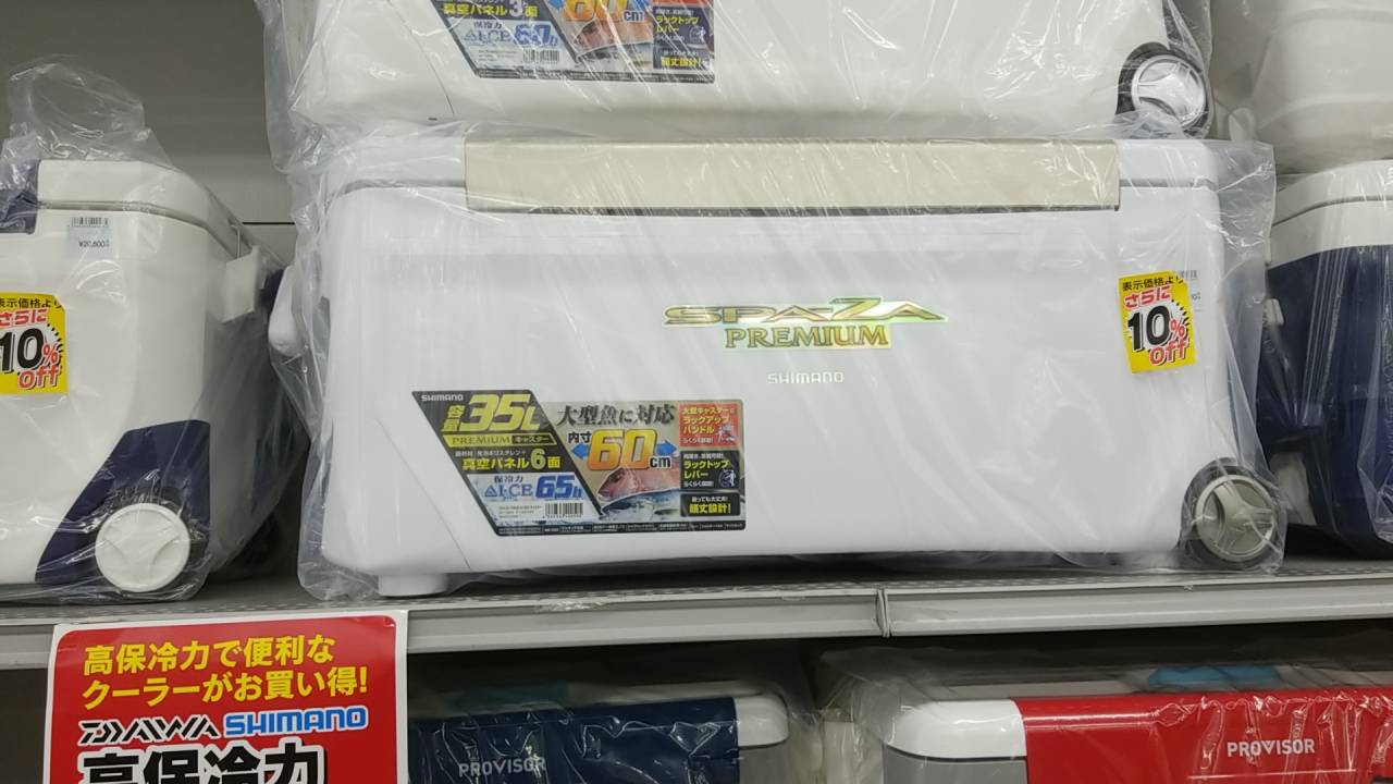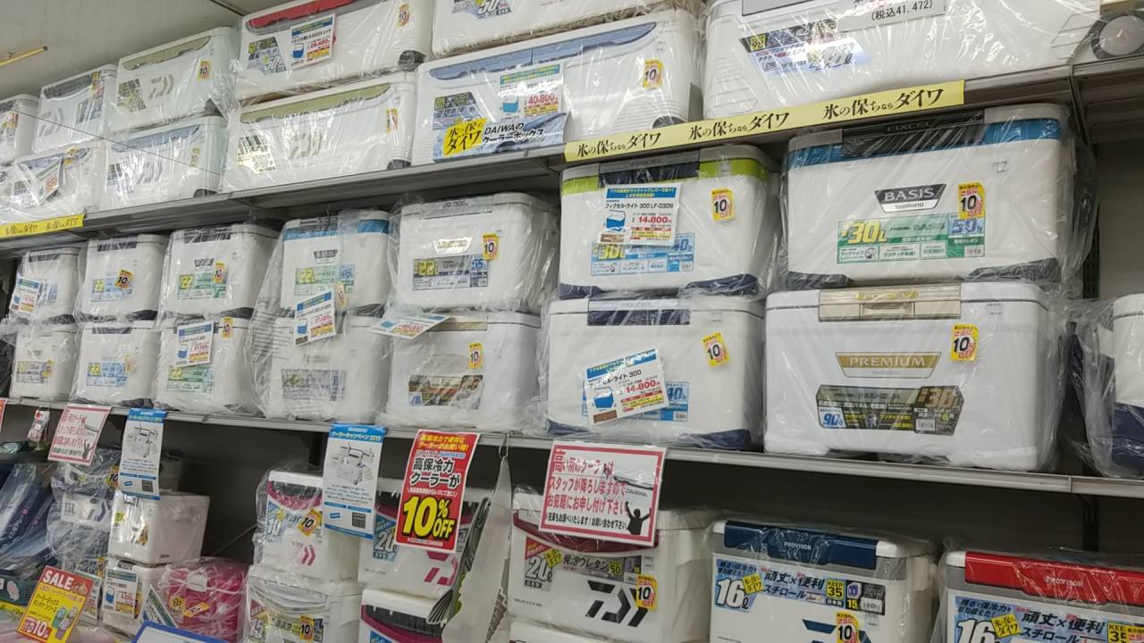 お盆の海釣りに向けてクーラーボックスを購入しようと釣具店へ