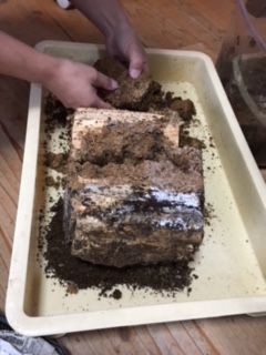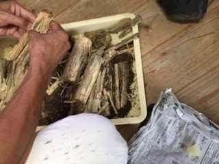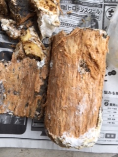 割り出し(木を割って幼虫を取り出す)をしてもらいます。