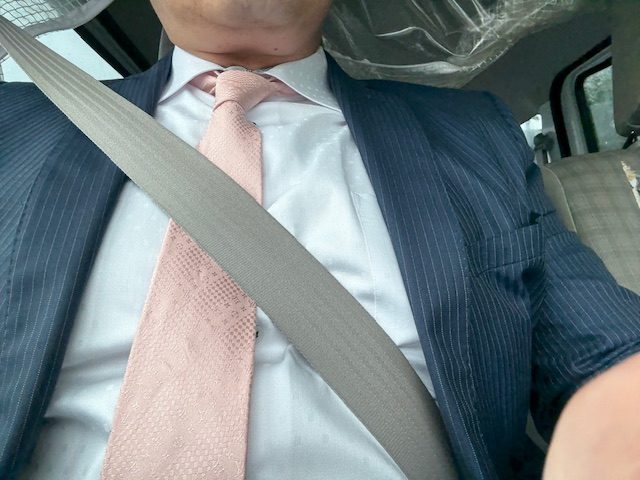 キツ~ 今回体重を落とせなかったのでスーツとワイシャツがキュンキュン・・