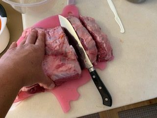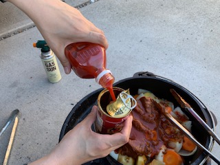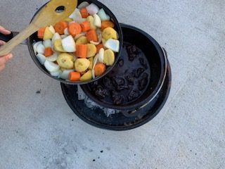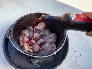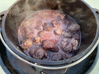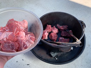 プレヒートしてあるダッジオーブンで表面をカリッと炒めて
