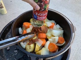 1時間ほど煮込んだらそこへ炒めた野菜を投入