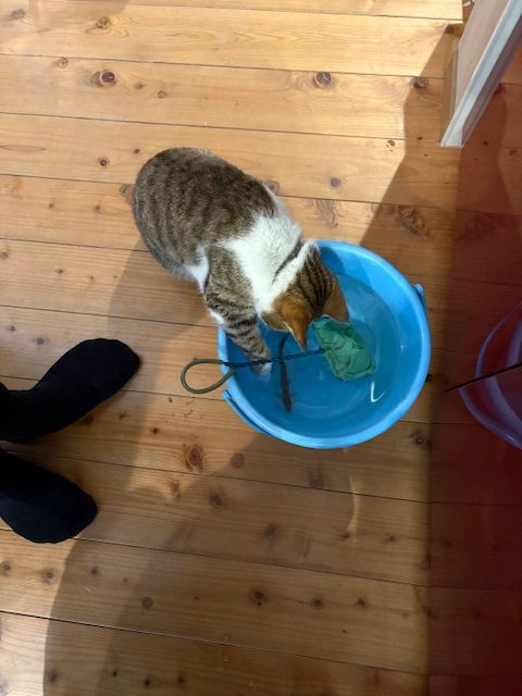 昨年は水槽の中のドジョウを捕えようと必死でしたな