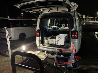 リアハッチを開いてタープ代わりに(一人だと身軽だなぁ)