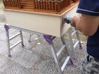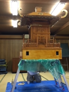 一年ぶりに神輿を倉庫から運んで修繕と塗装