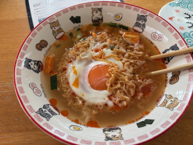 キムチとニラ、ごま油がついている以外は普通のチキンラーメンと同じ