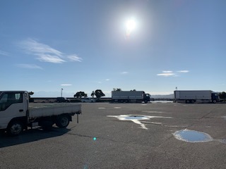 接触を避けるため食事は車内で