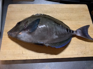 カワハギのようなザラザラした硬い皮をはぐと身はほぼ鯛ですね。