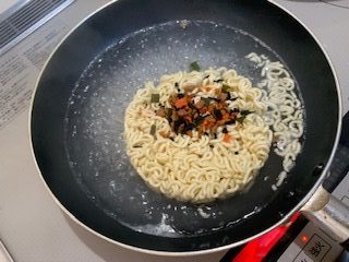 焼きちゃんぽんなので水っぽくならない様、正確に水を計って