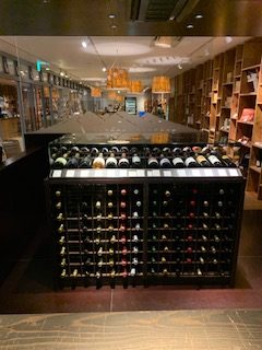 ガラス越しのケースの中に色々な銘柄のボトルが並び