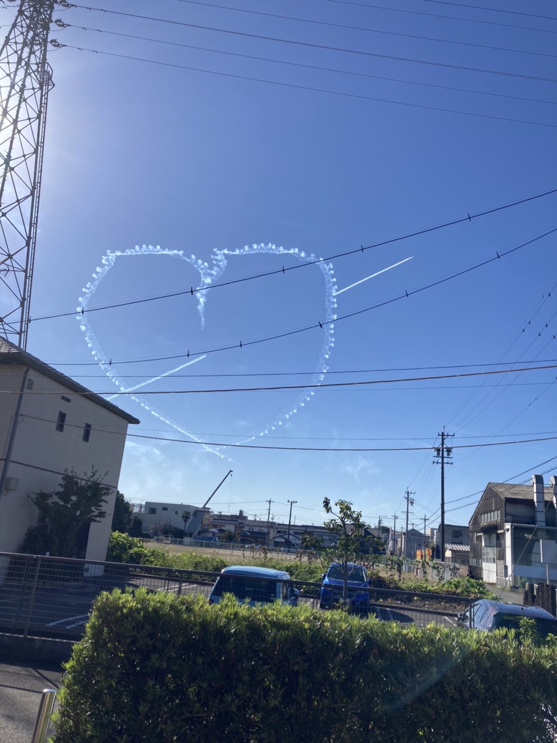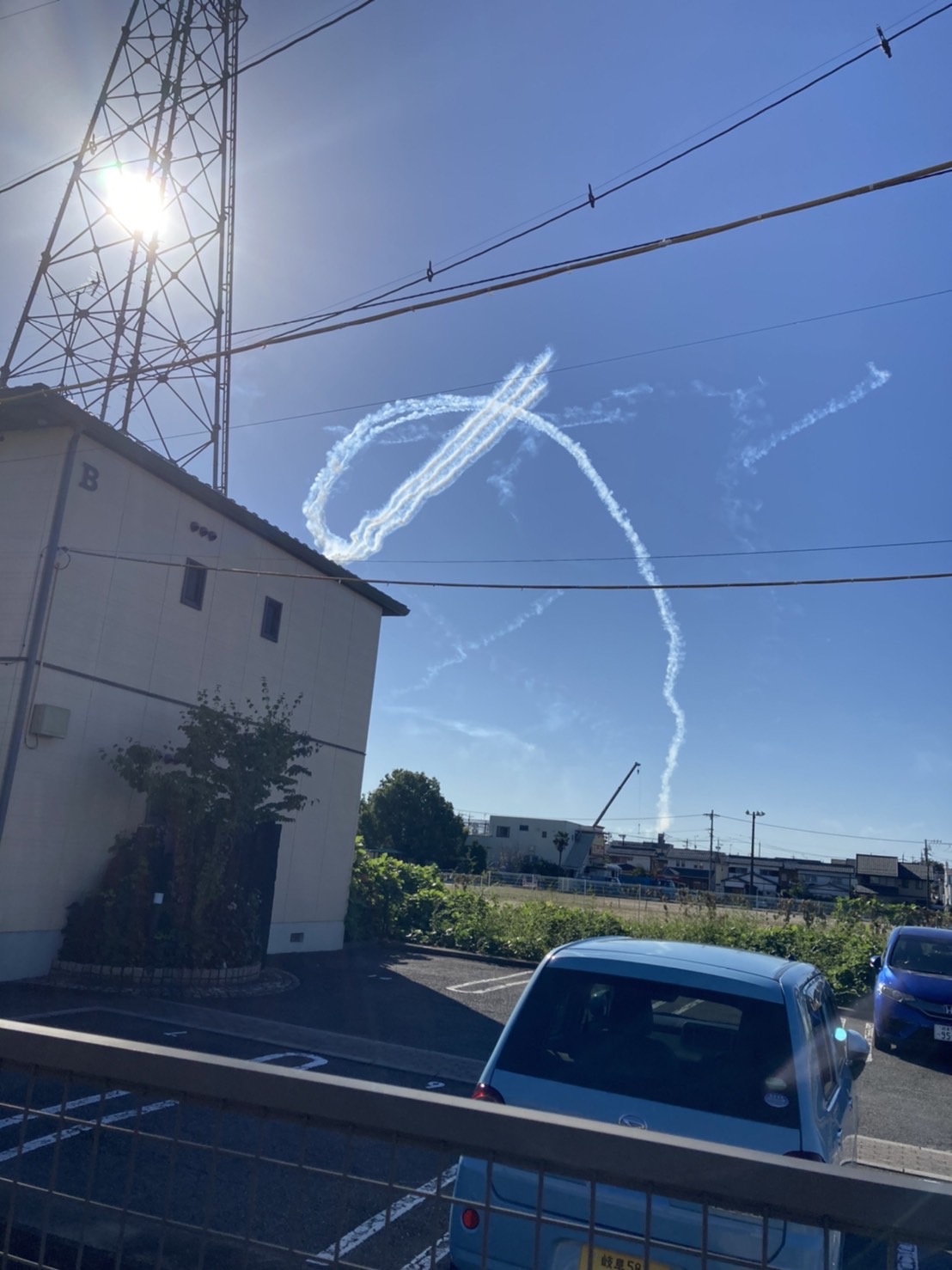 朝、玄関を開けると西の空から爆音が