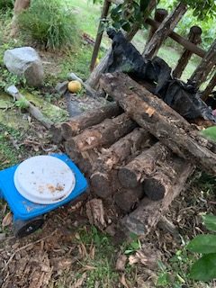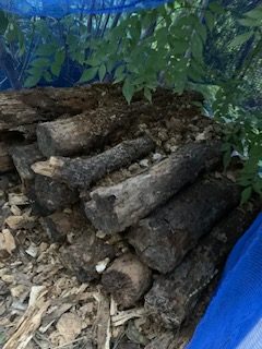 冬に用意しておいたシイタケの原木
