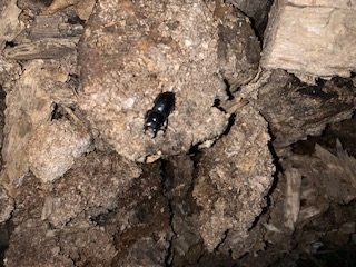 小指の頭くらいの大きさだけど間違いなく昨年放ったヒラタクワガタの子供