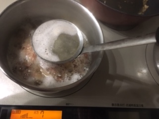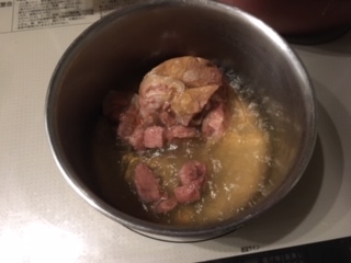 プリップリのゼラチン質  鍋で煮ると独特の臭いが・・