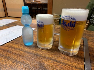 冷房の効いた部屋でビールと料理を堪能して