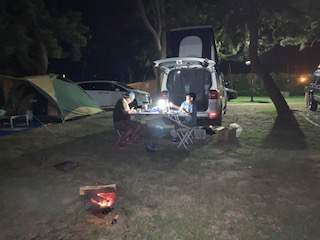 日中遊んで夕方にキャンプ場にチェックイン