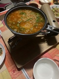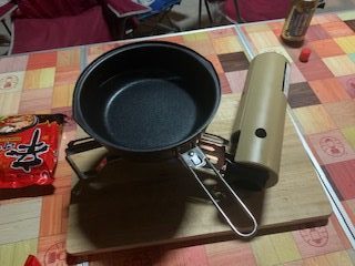家の中でやればいいと思ったけど、そこはキャンプの醍醐味・・コンロを出してきて