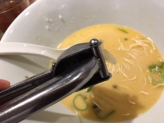 やはり白丸が食べたくなり、息子のスープをもらって替玉 ♪
