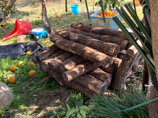こうやって木の下に積んでおけば日陰になるし、