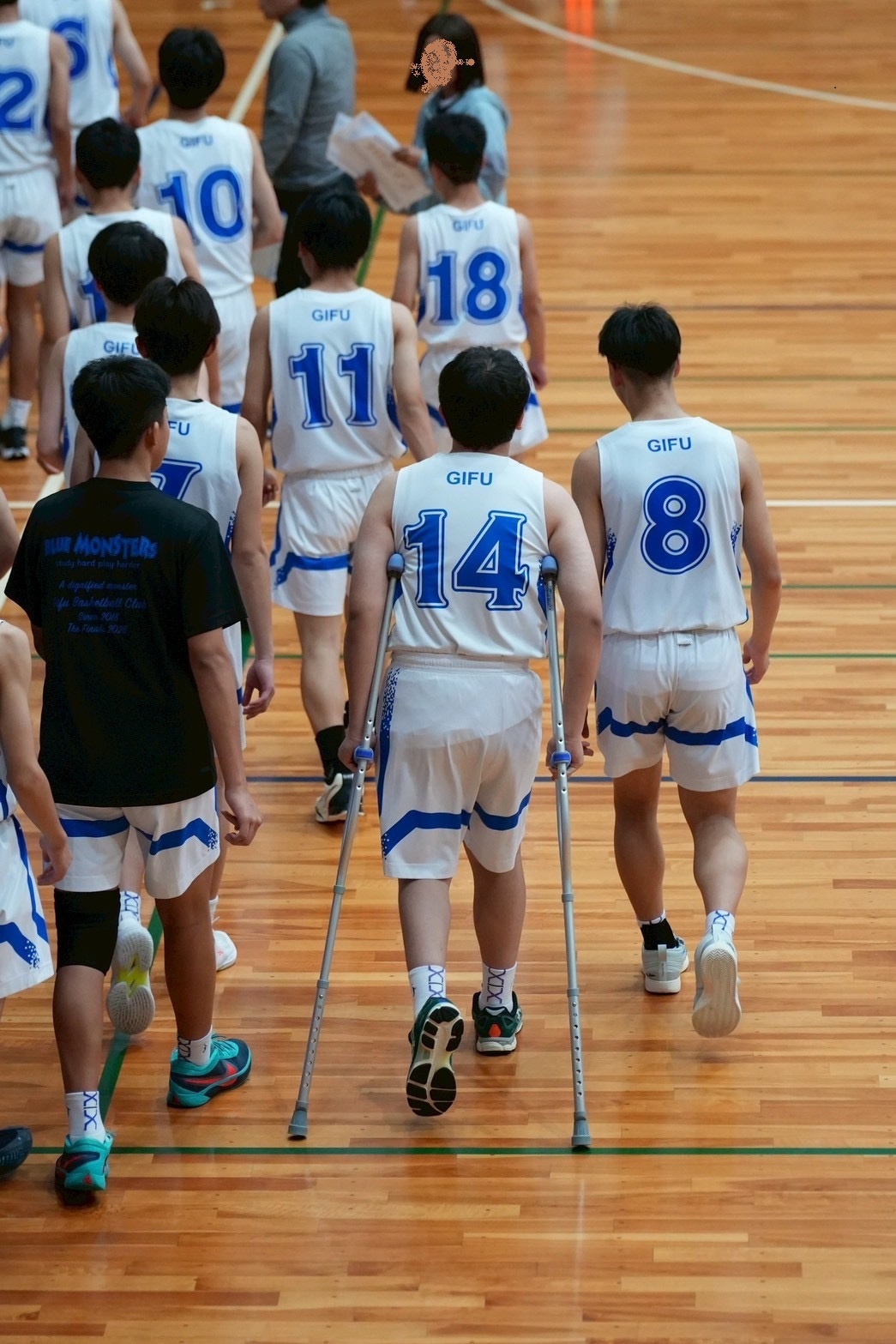 松葉杖をはずし、みんなの声援を受けながら凛とした姿でコートに立ち