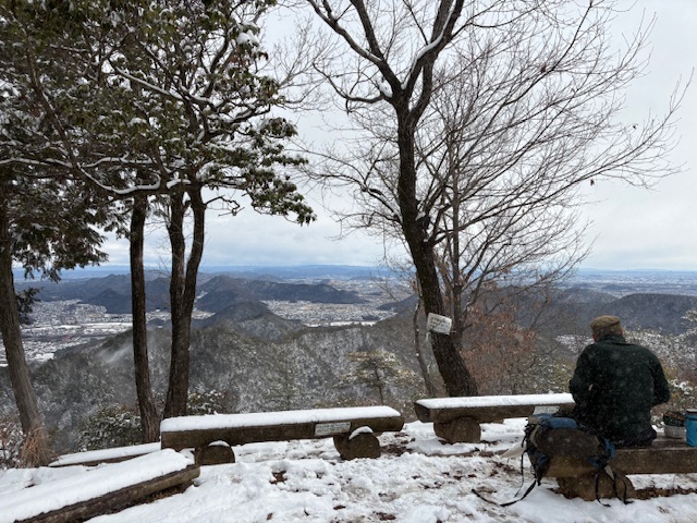 山頂でお弁当を食べている人を見て