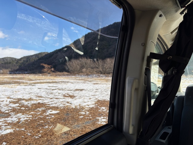 誰もいない河原でFFヒーターを焚いて