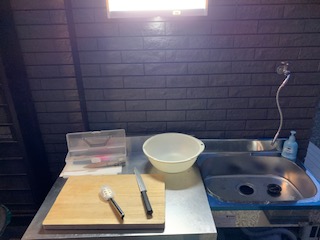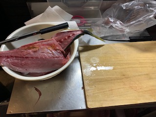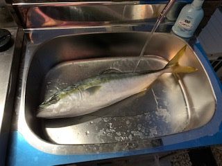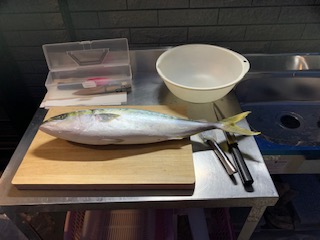 凛とした雰囲気の中で、おなじみ近所のオバちゃんから仕入れたハマチ