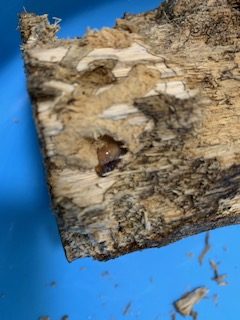 木のかじり具合だと期待度大 ♪(♀が木に穴を開けてそこに卵を産みます)