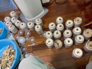 菌糸を詰めたボトルに移動させ
