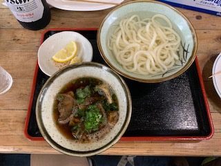 店オリジナルの炙ったホルモンのつけ汁のうどん これも絶品!