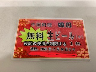 今回、顔を覚えてもらえた(常連の仲間入り?)のか初めてビールの無料券を頂きました。