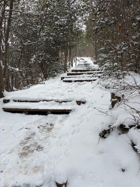登るにつれて雪深くなって
