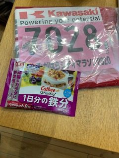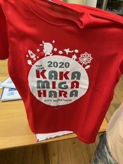 開けてみたら、中止になった各務原シティマラソンのゼッケンと参加賞