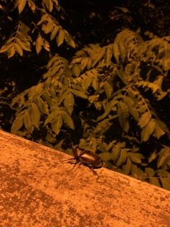 橋の欄干にとまっている一匹のカブトムシに癒されるのでした・・