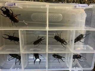 片づけをしていたらブーンと車内灯に大きなミヤマクワガタが!