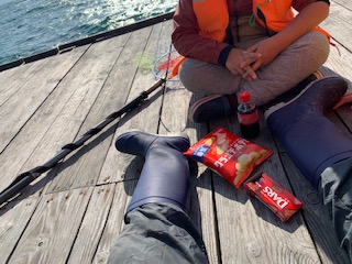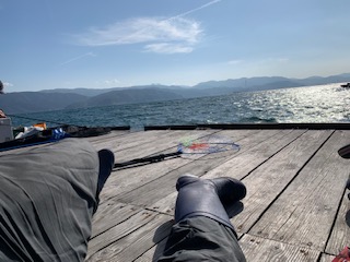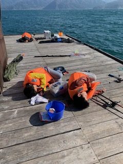 風は強いけど、ポカポカ陽気なので筏の上でウトウト・・