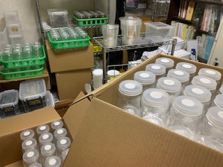 部屋中に散らかっている飼育用品や販売用品の整理