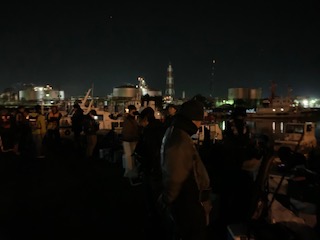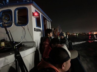 真っ暗の中、大勢の釣り客がギュウギュウに乗船してまるで密○船みたい