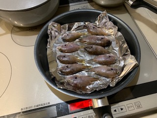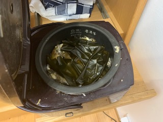 研いだお米の上に、出汁と炙った鯛を入れて炊飯器で