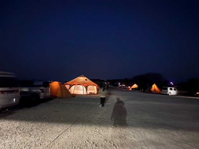 この強風でも倒れないテントの設営技術に感心しますね
