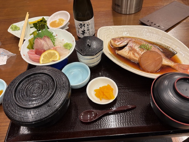 煮魚&刺身定食 小さい鯛だけど上手に煮てありますね(旨い)