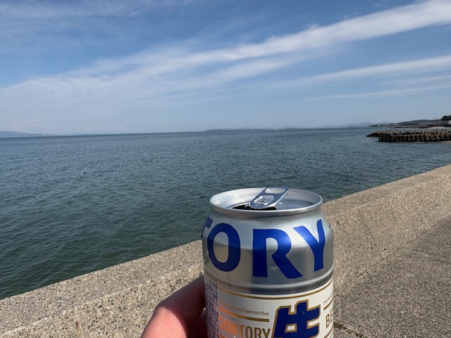 海を眺めながら一杯 程よく体が疲れてるので最高ですね