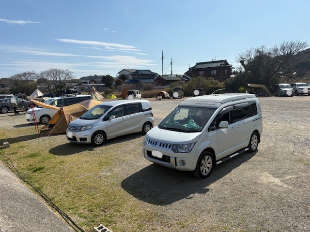 海沿いのキャンプ場へ(結構混んでますな でもサイトが広い)
