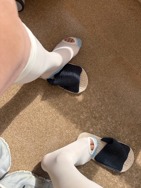 血栓がつまらないように弾性ストッキング(白鳥の湖みたい)