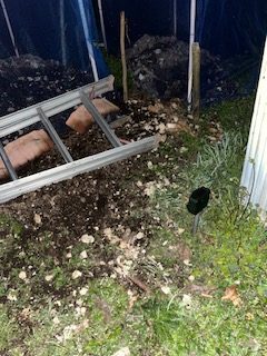 タヌキ対策として設置したセンサー付き撃退器も