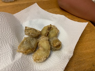本当は「てっさ」にしたかったけど、大将に言われた通りブツ切りにして唐揚げに