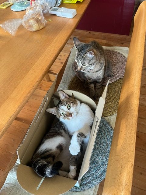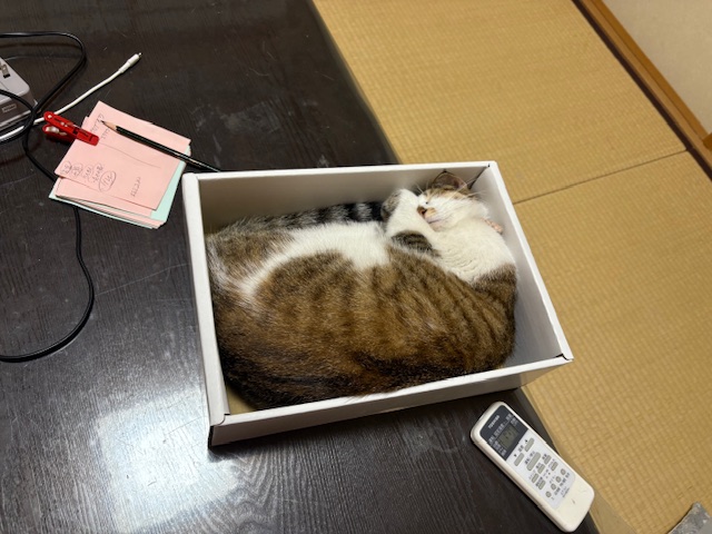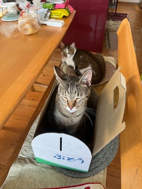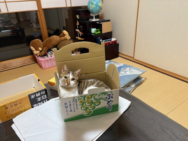 特に頂き物のフルーツの箱(窮屈じゃないのかね?)