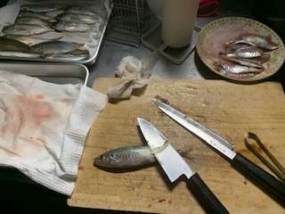 大量に釣れたアジを捌きます。(30匹はいたでしょうか)