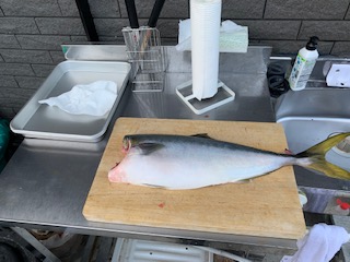 市場で買ったブリを捌いて