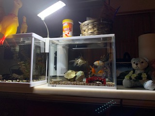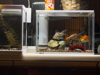 暗闇の中に浮かぶ金魚の水槽に魅せられてしまいましたよ。