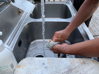 包丁も使わず素手で鮮やかに捌いてくれましたよ。(こりゃ私ではムリ・・)